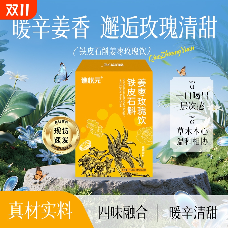 官方正品特级紫皮石斛姜枣玫瑰姜汁本草健康即饮暖养冲饮果汁