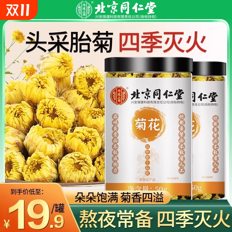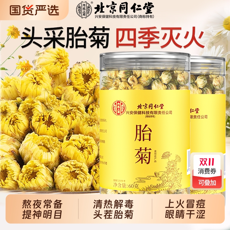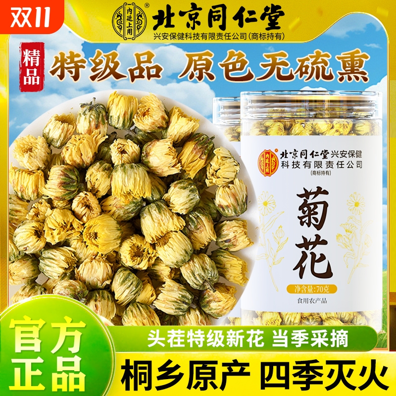 北京同仁堂菊花茶胎菊白特正品级贡菊花杭凉茶叶干清火官方旗舰店