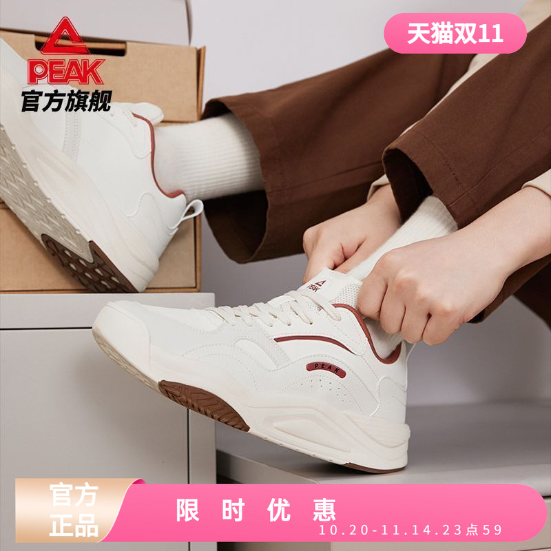 匹克漫游态极板鞋新款女鞋革面软弹舒适运动鞋增高百搭时尚简约鞋
