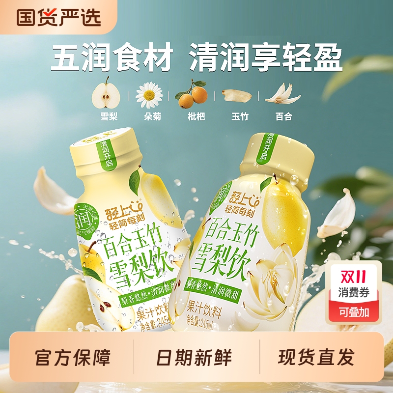 轻上百合玉竹雪梨水果汁饮品0脂肪清润枇杷炖梨水果汁饮料整箱装