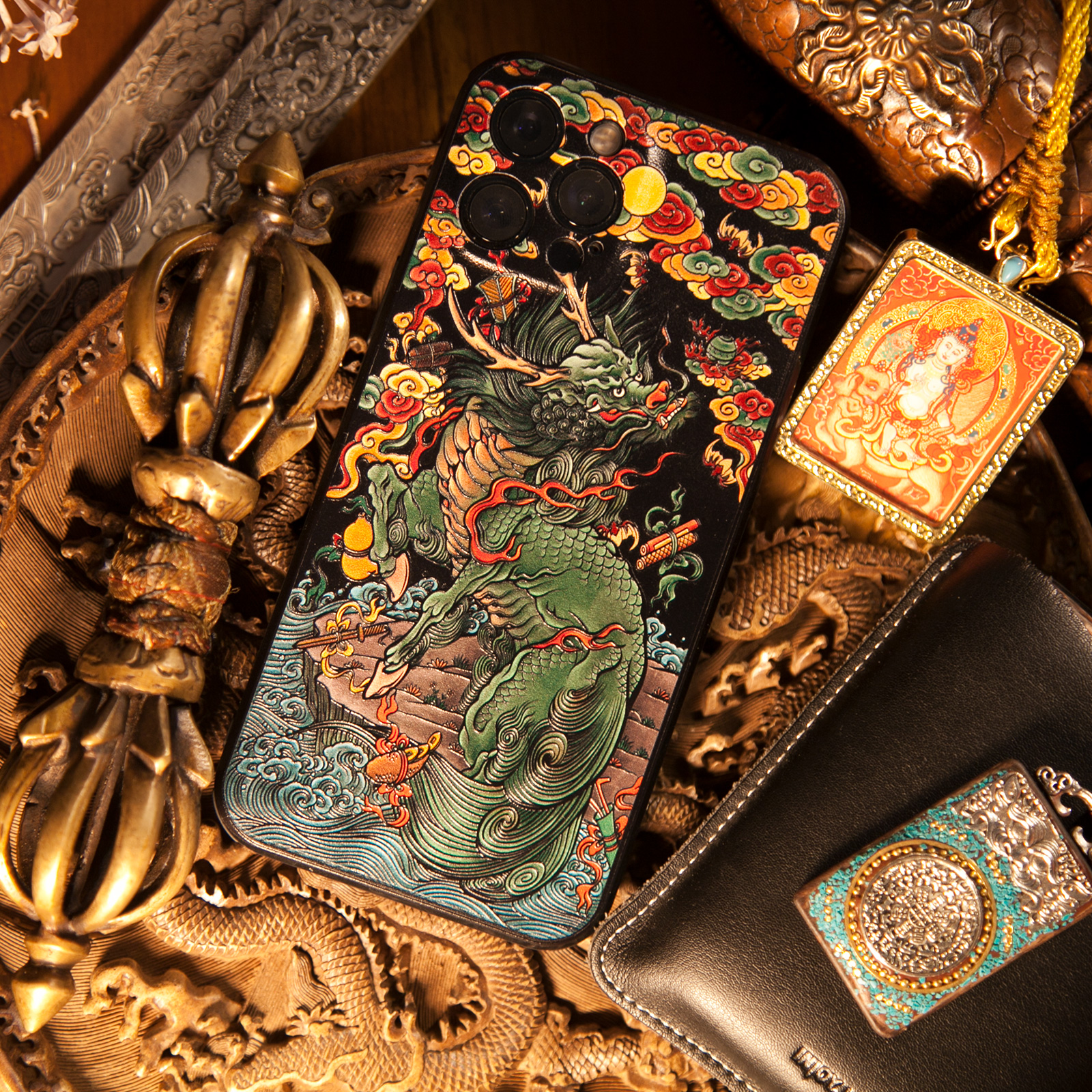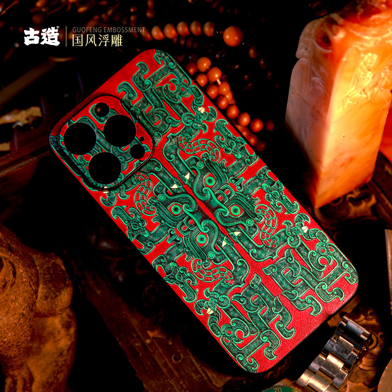 古造 红龙饕餮 皮纹手机壳适用iPhone17浮雕iPhone1