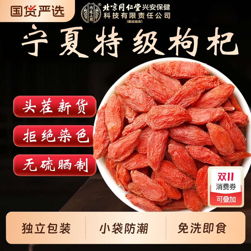 南京同仁堂无硫熏头茬红枸杞宁夏特级250g大果搭黑枸杞子原产免洗
