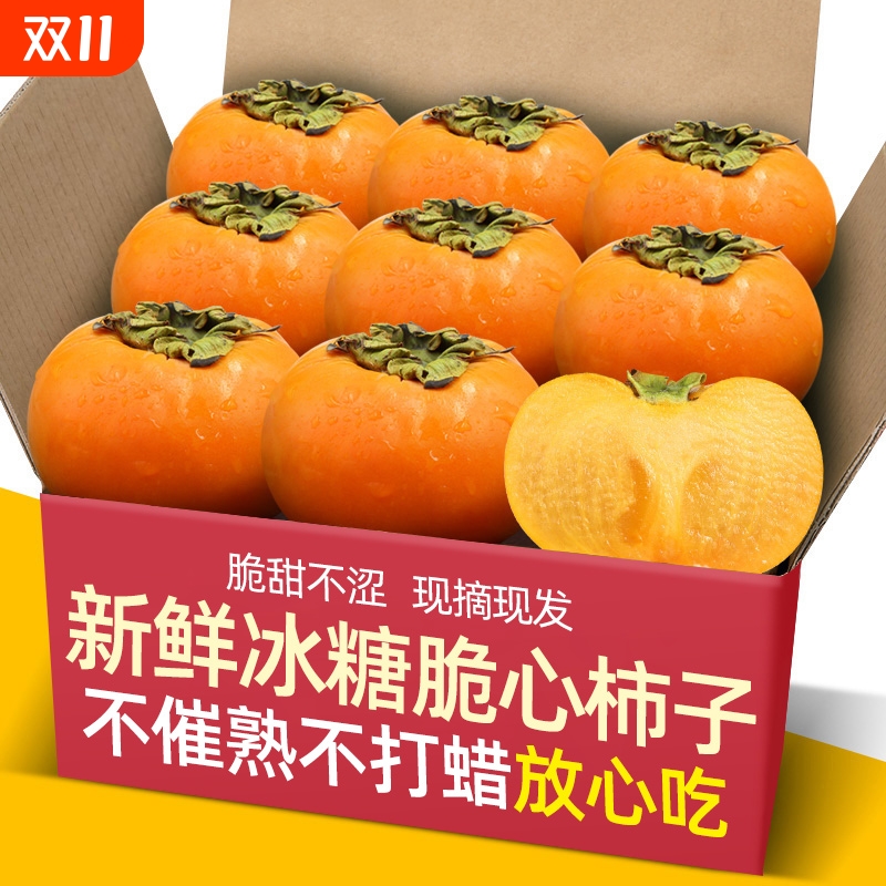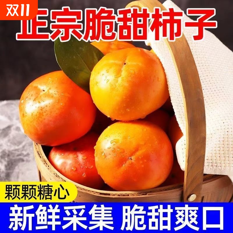 正宗脆柿应季柿子新鲜水果无核整箱批发价冰糖甜柿脆甜
