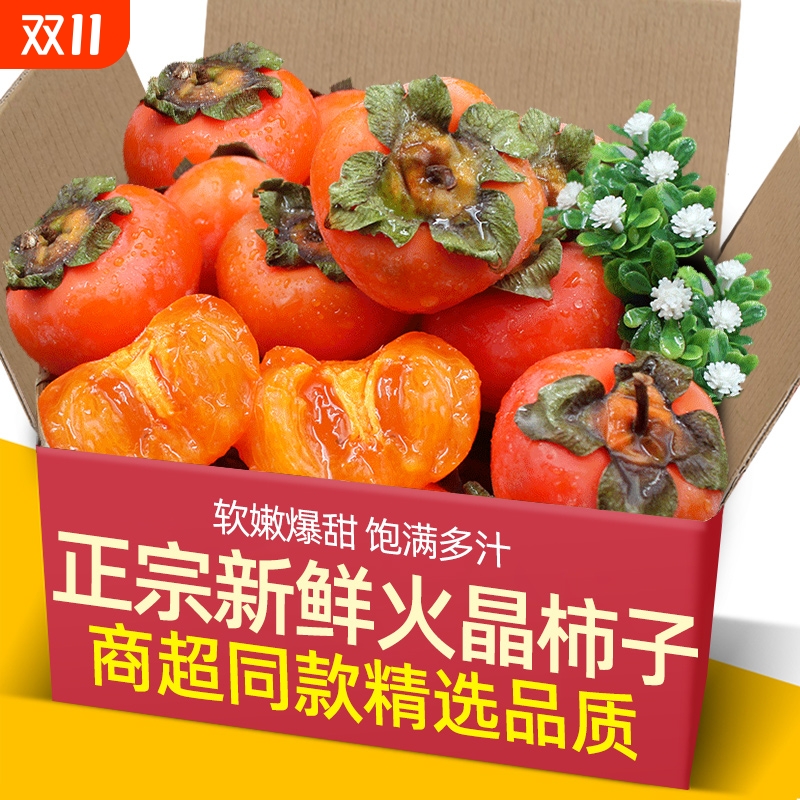 陕西火晶柿子新鲜现摘15/30枚 当季软甜柿子临潼特产多汁蜜甜水