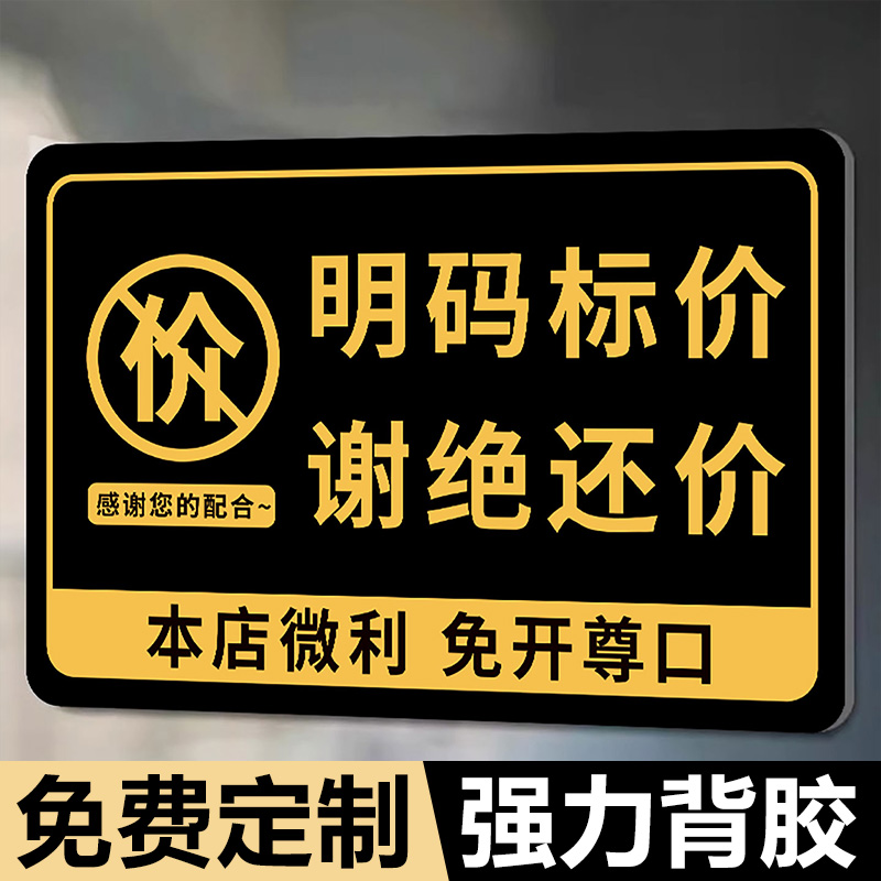 明码标价谢绝还价提醒牌概不赊账温馨提示牌亚克力不议价不赊账墙贴展