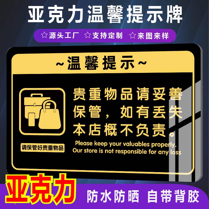 谢绝赊账亚克力标识小本生意概不赊账标牌偷一罚百标志温馨提示贴