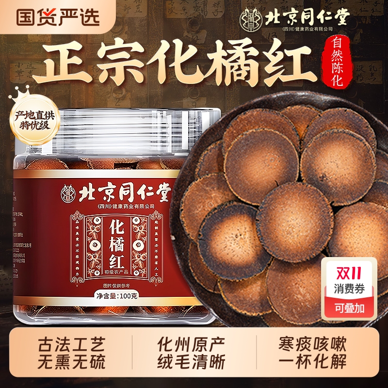 同仁堂新会陈皮干官方旗舰店中药材正品橙皮丝泡水喝化痰止咳润肺