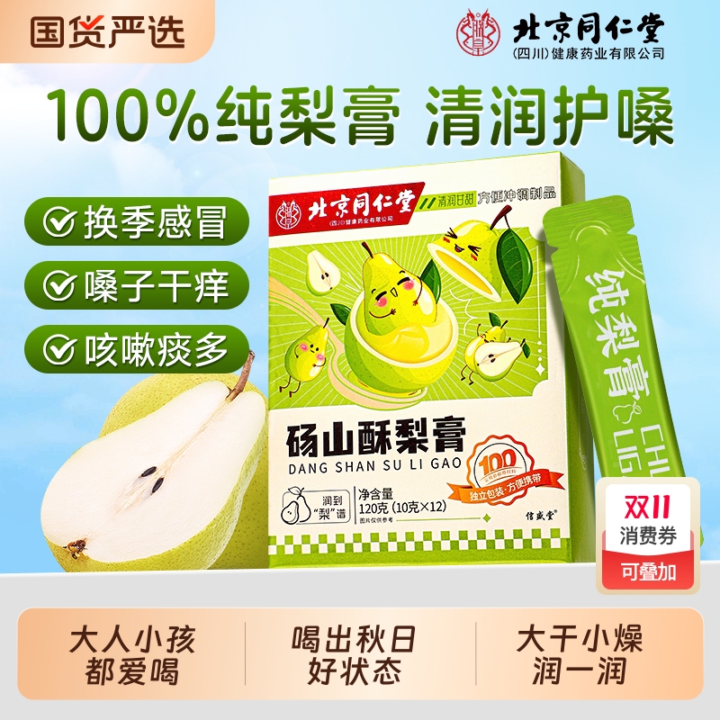 北京同仁堂纯砀山酥梨膏儿童秋梨膏无添加润肺止咳官方旗舰信盛堂