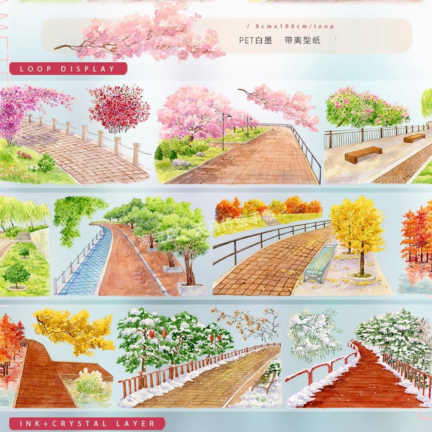 手帐分装胶带四季步道景物志风景道路古风PET素材账流麻贴纸咕卡