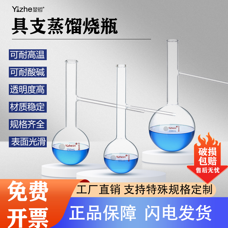 玻璃单口圆底平底烧瓶耐高温球形150/250/500/1000m