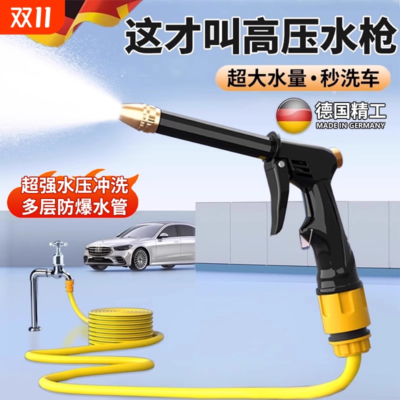 高压洗车水枪家用直喷枪冲车增压铜喷头水管软管冲洗防爆洒水防冻