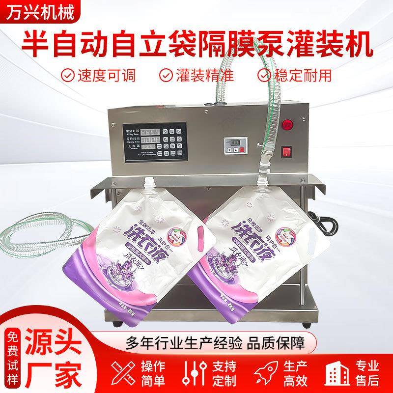 半自动自立袋隔膜泵灌装机洗衣液汤料包豆浆牛奶矿泉水酸梅汤中药