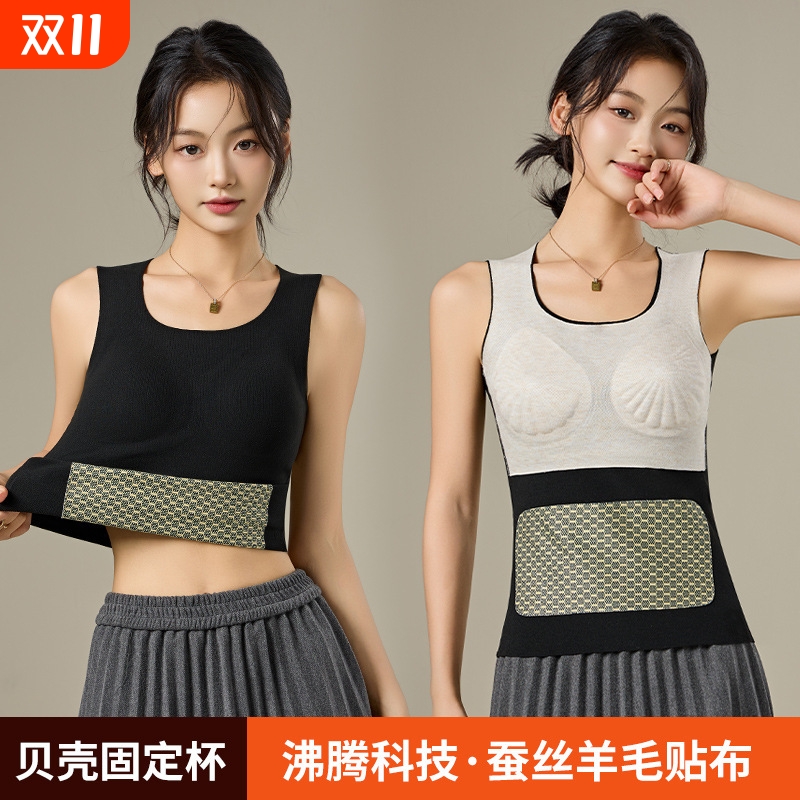 沸腾贴片贝壳杯固定胸垫保暖背心加绒加厚秋冬无痕可机洗保暖内衣
