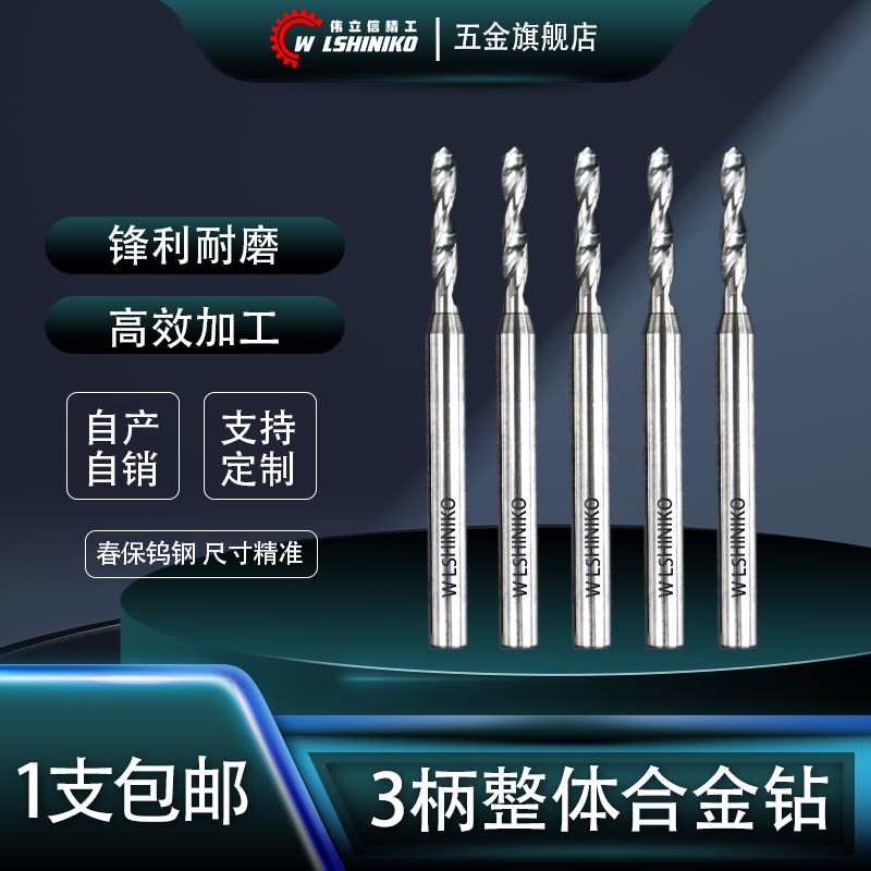 伟立信-加硬58度3柄钨钢钻硬质合金定柄微小径麻花钻头大柄钻咀