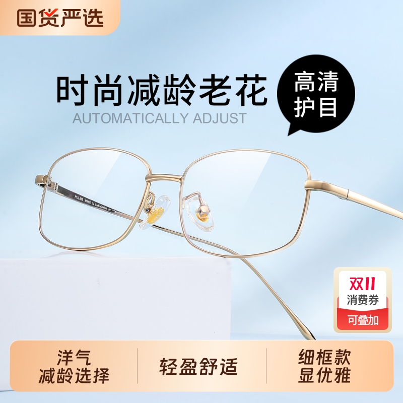 老花镜日本进口高清防蓝光金丝细框纯钛超轻洋气女士品牌高档正品