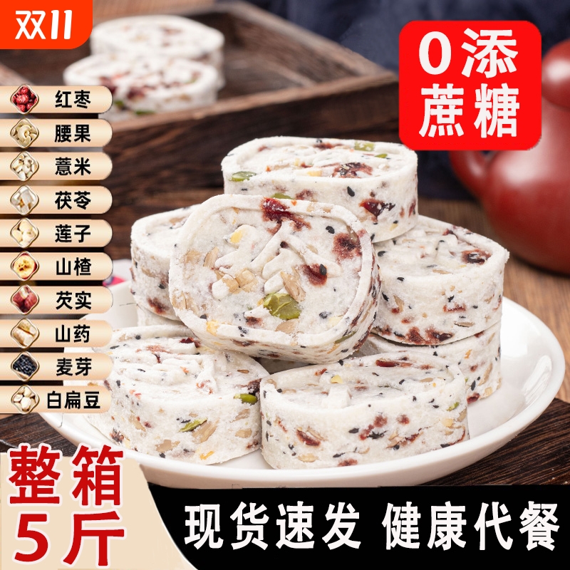 坚果茯苓八珍糕无蔗糖正品糕点心解馋代餐饱腹好吃的零食淮山薏米