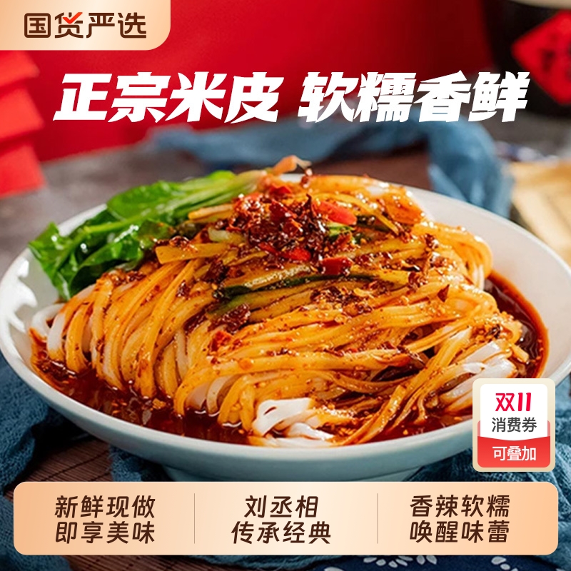 汉中米皮热米皮陕西凉皮热面皮特产速食早餐美食袋装夜宵柳林免煮
