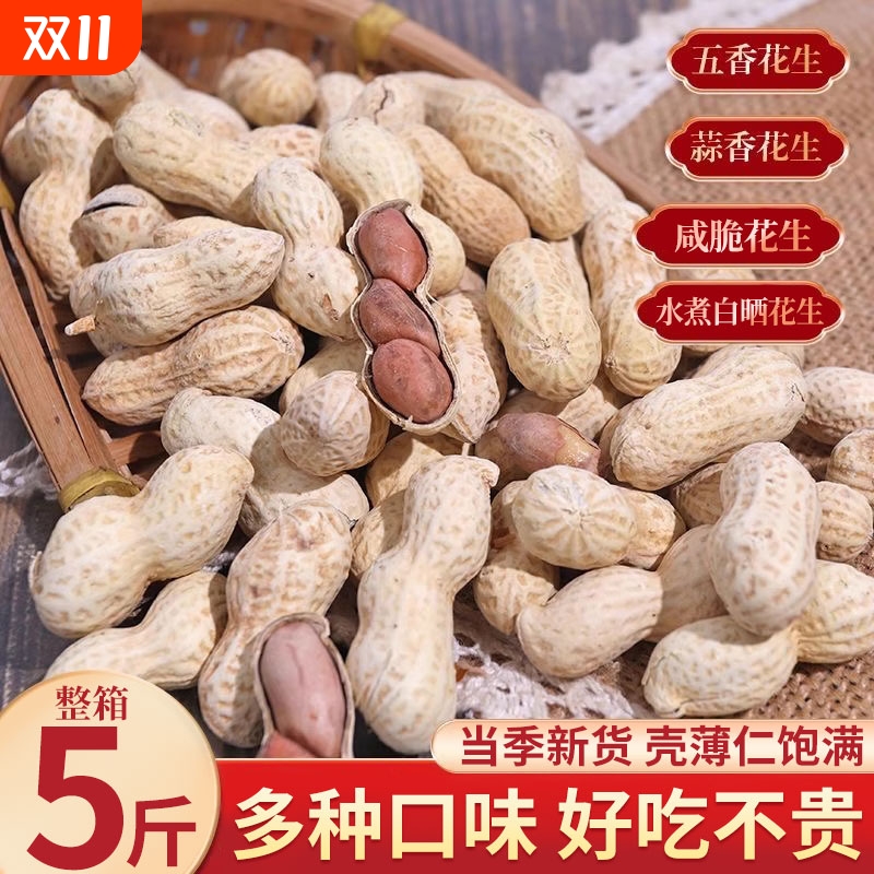 蒜香花生炒熟带壳五香原味喜花生米水煮白晒龙岩花生炒货零食结婚