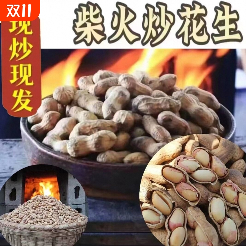 农家铁锅炒花生带壳熟原味柴火瓜子花生炒货大全零食小吃休闲食品