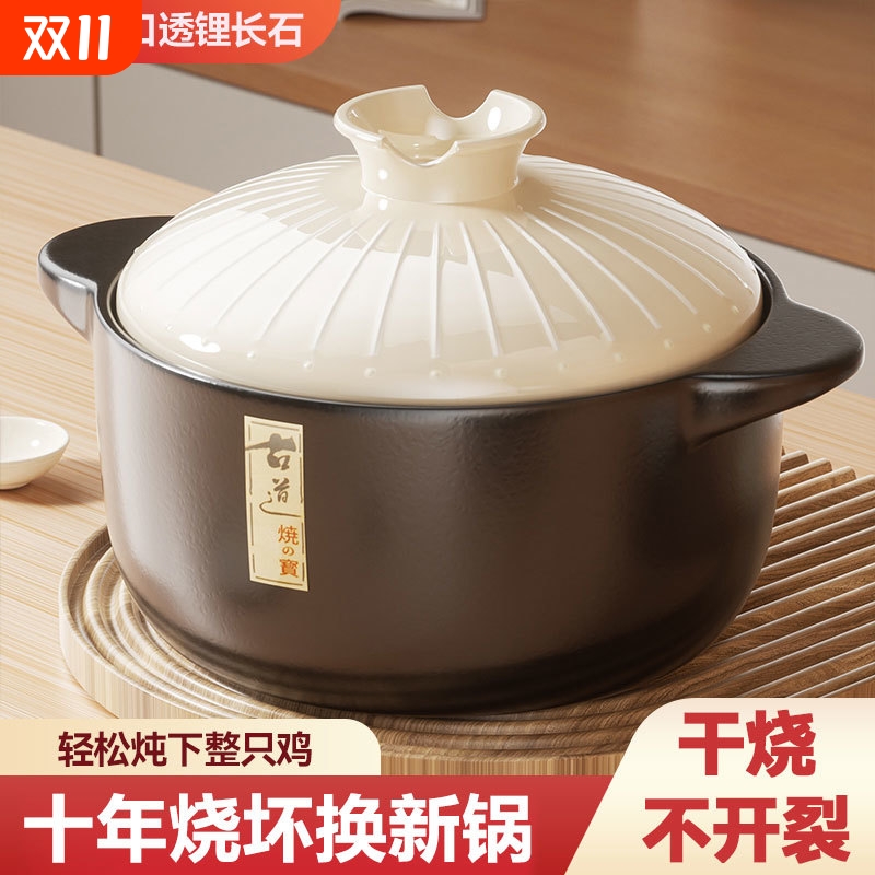 砂锅煲家用明火炖汤耐高温燃气干烧不裂大容量陶瓷煲仔饭煮粥沙锅