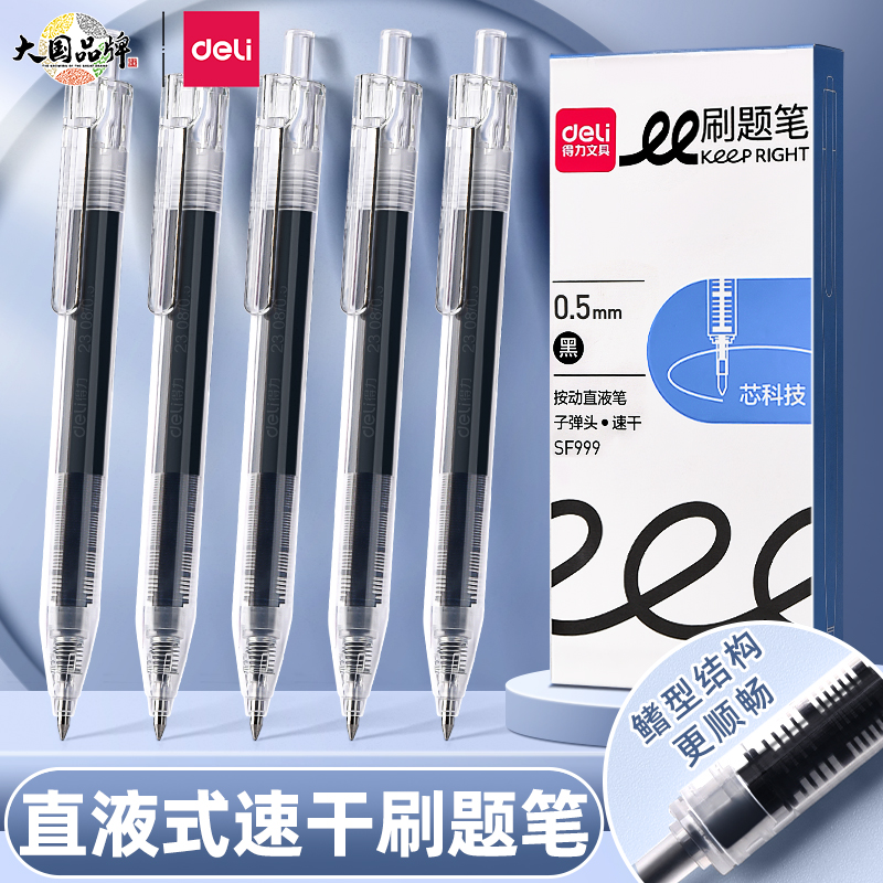 得力刷题笔速干st头按动笔S08E中性笔学生用备考水性笔0.5m