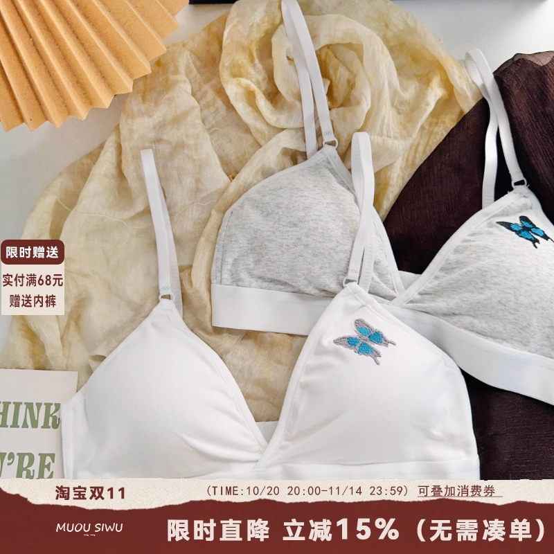 法式三角杯内衣女运动风蝴蝶印花无钢圈无痕薄款亲肤透气小胸文胸