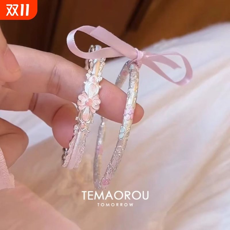 新中式鎏金手工雕刻珐琅滴油粉色花朵雕刻手镯女民族风手环手饰品