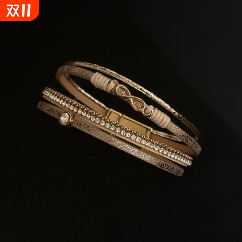 「biu boom」波西米亚风多层排钻手环vintage 中古设