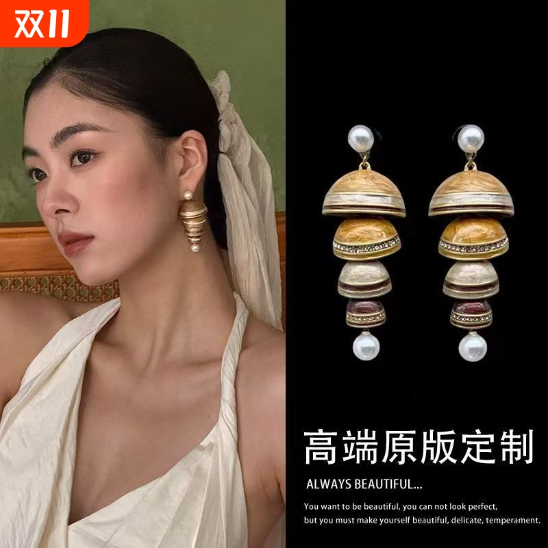 中古vintage珐琅彩釉风铃耳环法式重工轻奢精致长款新娘夸张耳