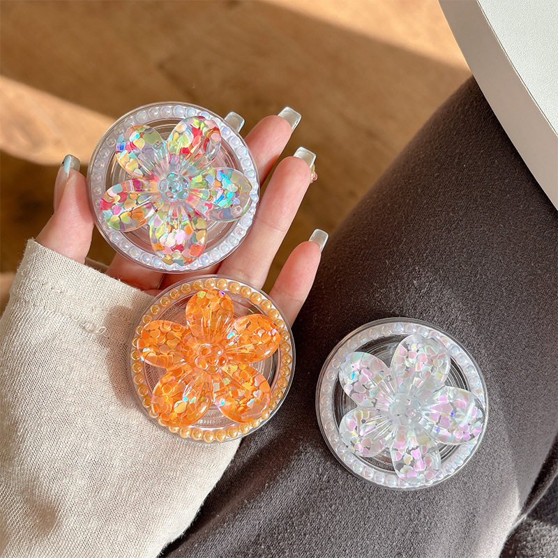 彩色亮片花朵珍珠磁吸手机气囊支架粘贴式伸缩背贴ins风强力吸附