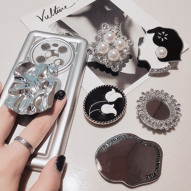 金属水钻闪粉珍珠纹磁吸气囊支架手机壳背贴伸缩粘贴式ins风新款