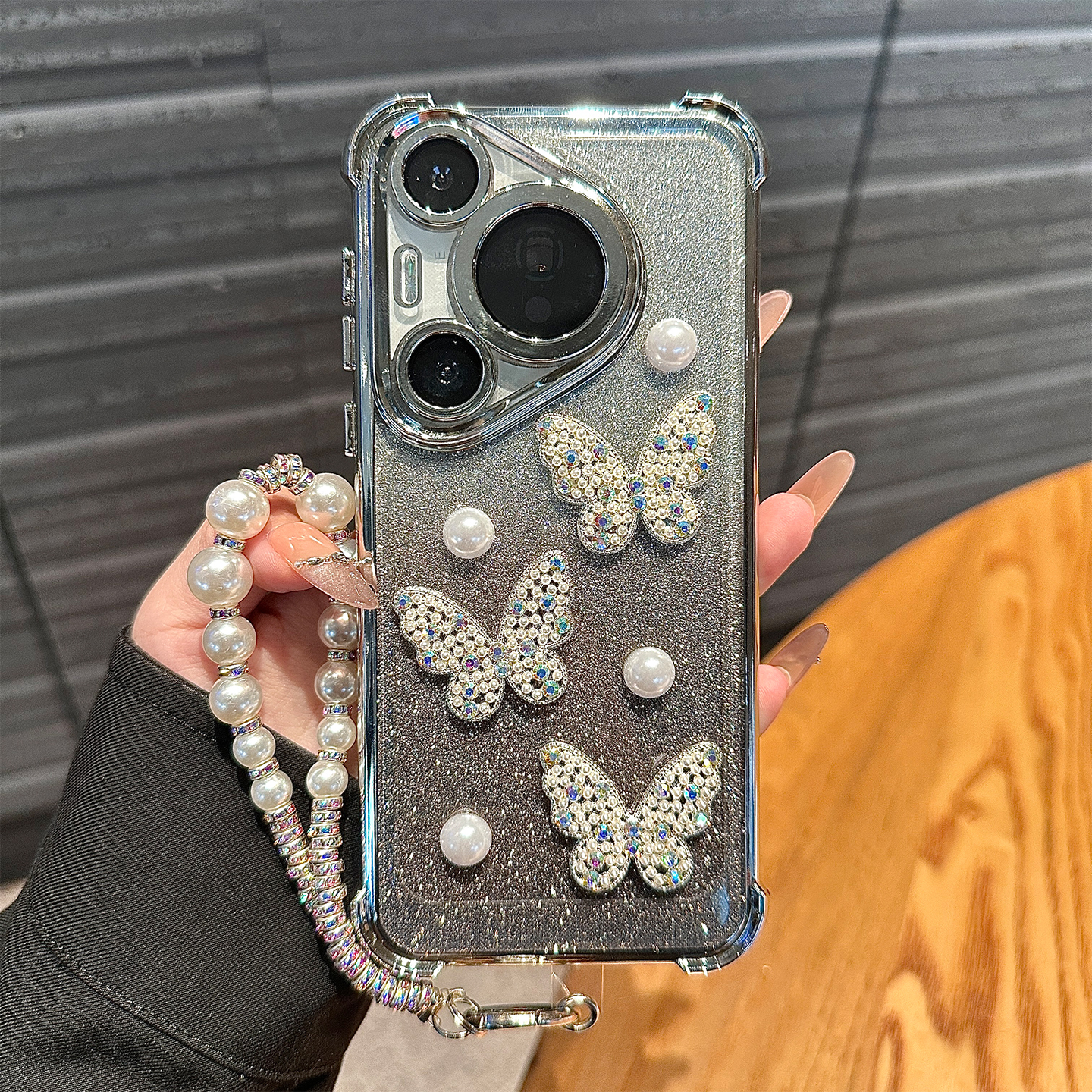 闪粉气囊立体珍珠蝴蝶适用华为pura80pro+手机壳新款70U