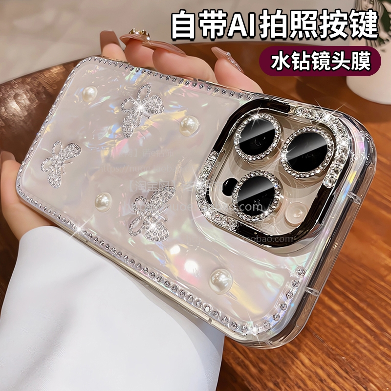 适用苹果16promax手机壳iphone15新款水钻镜头膜14
