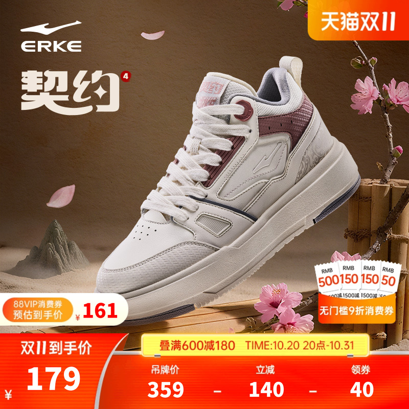 契约4|鸿星尔克板鞋女鞋冬季皮面增高休闲鞋学生百搭高帮运动鞋子