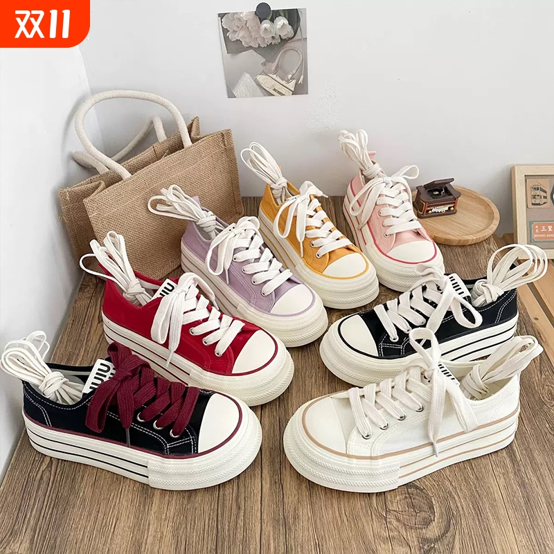 厚底增高学生透气帆布鞋女2025春秋新款松糕底休闲百搭小白鞋板鞋