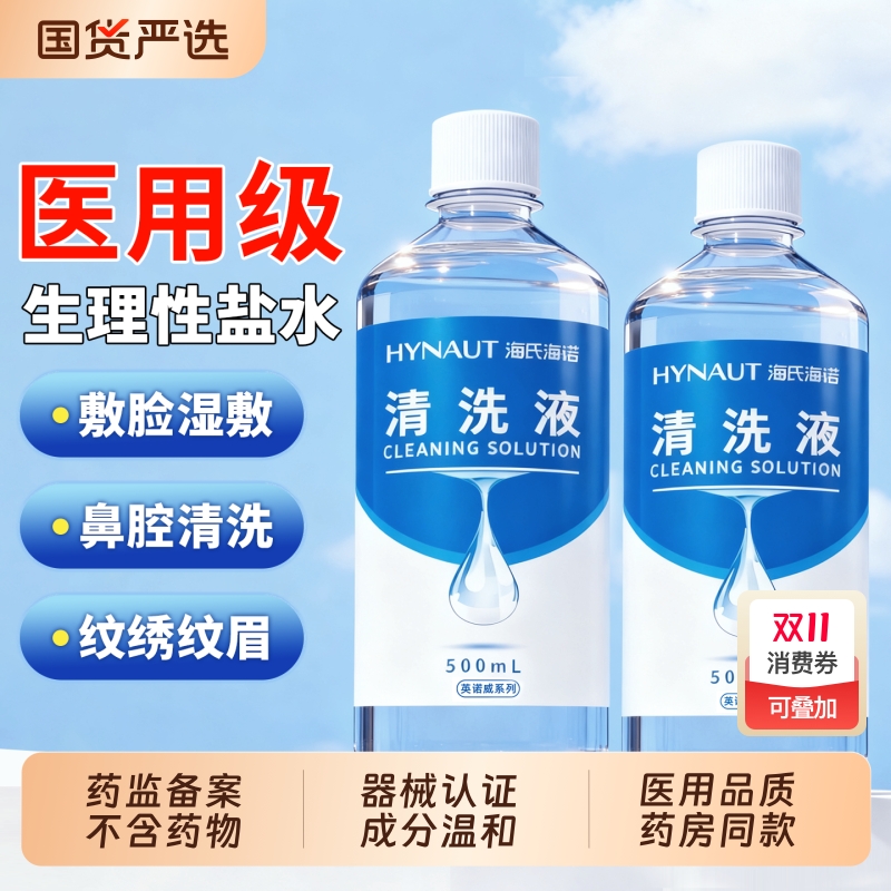 海氏海诺生理性盐水医用0.9%湿敷洗鼻眼纹绣大瓶装氯化钠清洗液