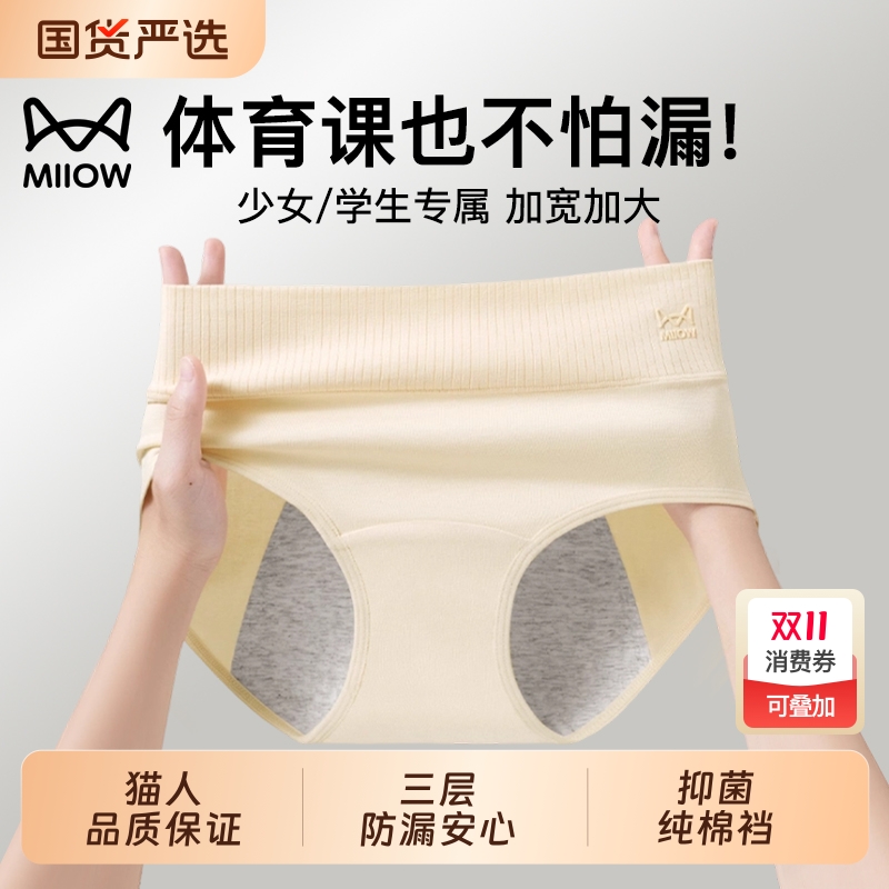 猫人2025新款生理裤女士内裤纯棉抗菌裆高腰抑菌透气三角裤经期裤