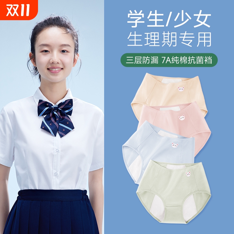 发育期生理内裤女纯棉例假少女经期安心12岁女孩初高中学生姨妈裤