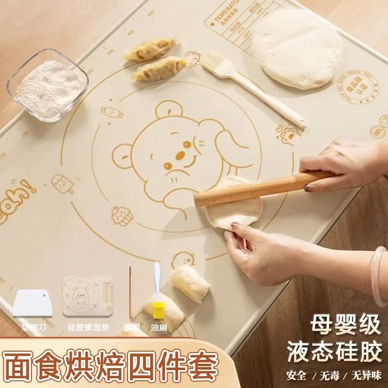 小熊揉面垫食品级家用加厚大硅胶擀面和面板防滑垫子案板烘焙面食