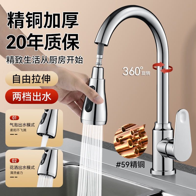 精铜厨房水龙头冷热家用洗菜盆二合一头水槽洗菜池万向旋转防溅水
