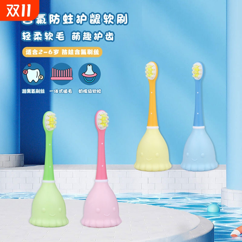 新款儿童含氟刷毛小章鱼乳牙刷宝宝婴幼儿1-6岁洁齿护龈家用清洁
