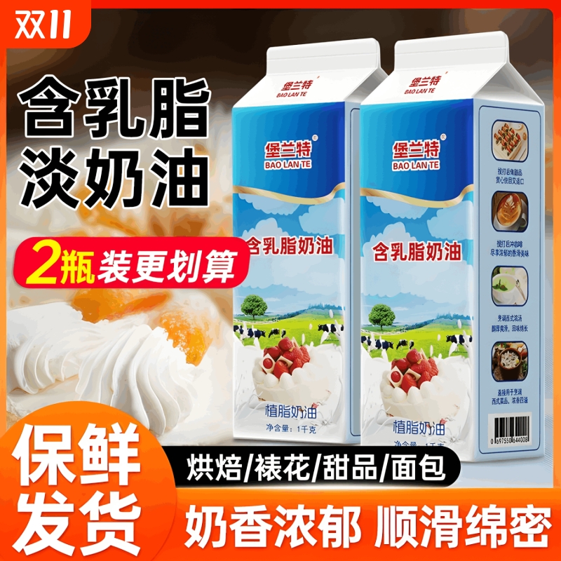 含乳脂淡奶油1L家用烘焙专用动物植物稀奶油蛋糕生日商用抹面裱花