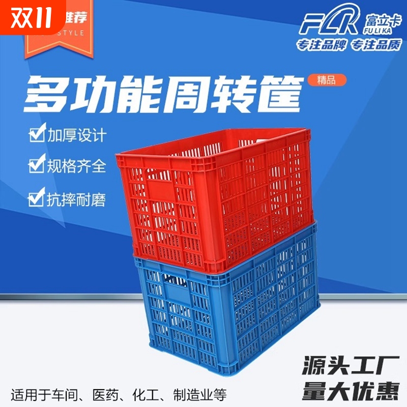 富立卡水果塑料筐长方形筐超大筐镂空家用收纳储物框加厚快递胶筐