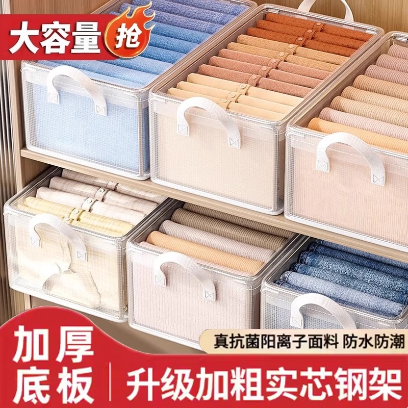 衣柜衣服收纳盒家用衣物整理箱储物盒裤子收纳分层神器棉麻筐折叠