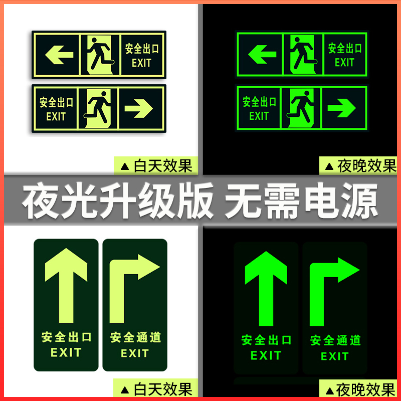 安全出口指示牌夜光通道墙贴自发
