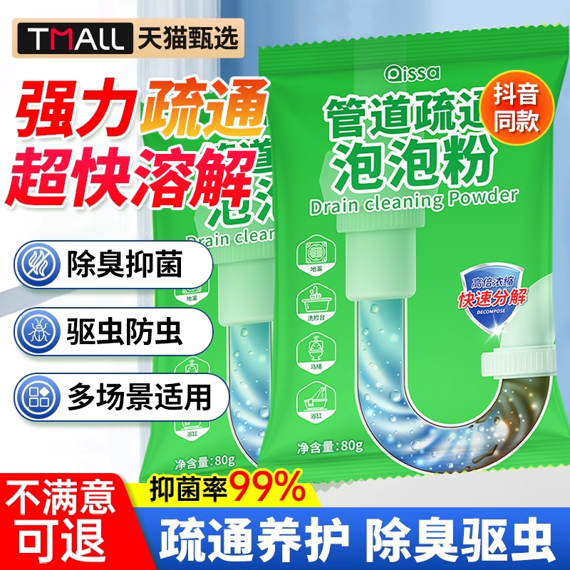 管道高速疏通剂泡泡粉强力溶解厨房下水道油污马桶疏通神器下水管
