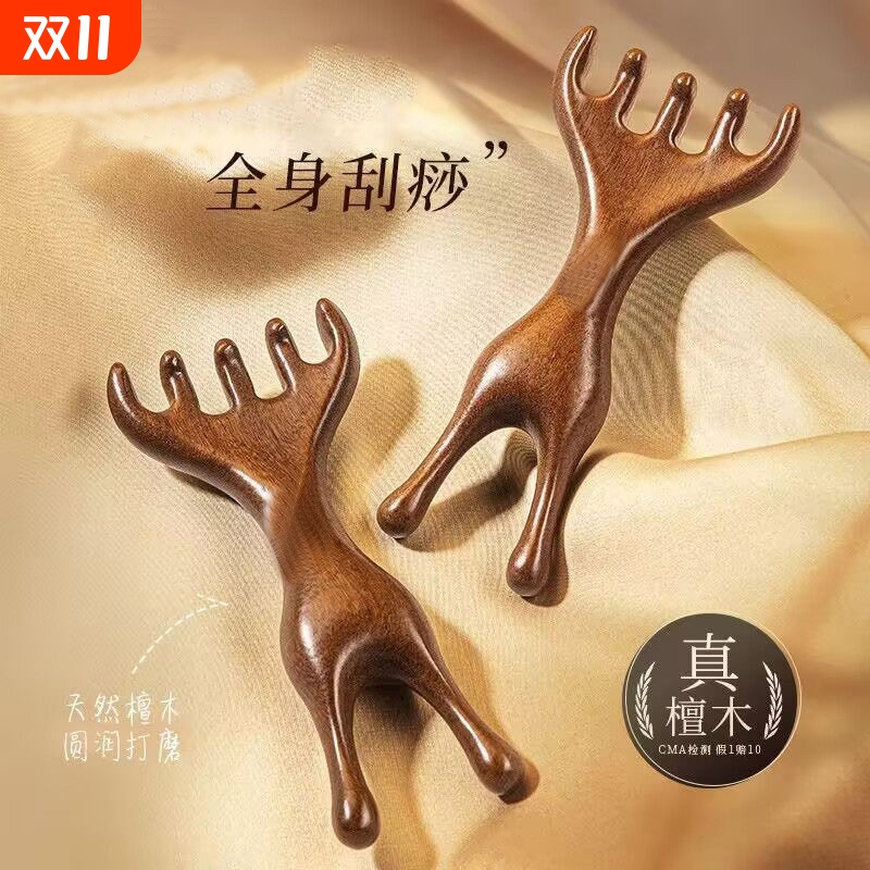 檀木经络按摩梳头皮五爪头部按摩经络梳养生头疗工具刮痧疏鹿角