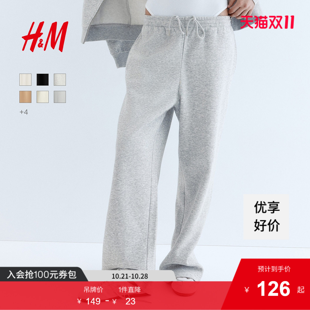 HM女装卫裤秋季休闲裤直筒宽松时尚运动男友裤松紧长裤119360