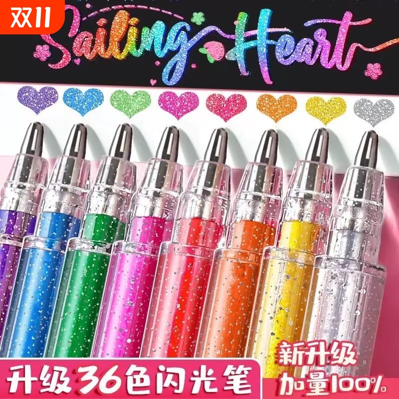美乐蒂彩色闪光笔亮晶晶珠光荧光标记笔流沙银光啫喱发光水彩笔儿童手
