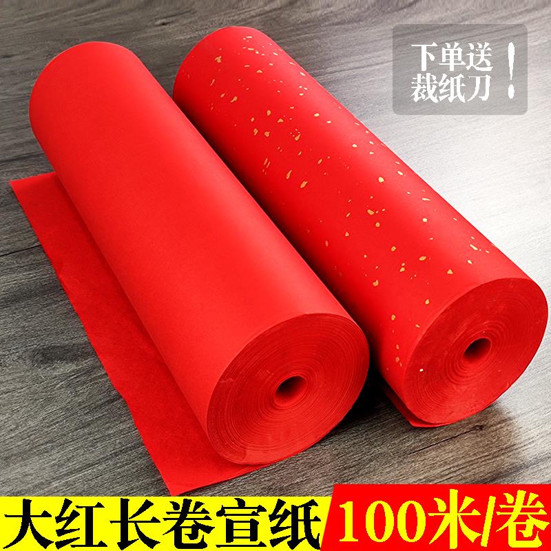 25款大红色素面洒金百米宣纸长卷加厚半生熟福寿春联书法用纸剪纸